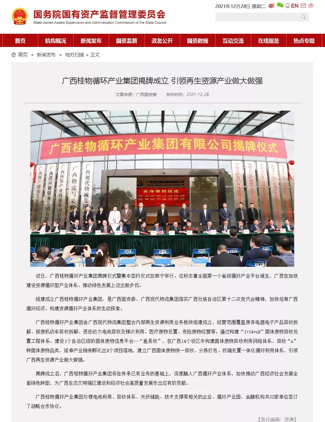 组建成立广西桂物循环产业集团,是广西国资委、金宝博188bet下载 落实广西壮族自治区第十二次党代会精神,加快培育广西循环经济、构建资源循环产业体系的生动探索。
