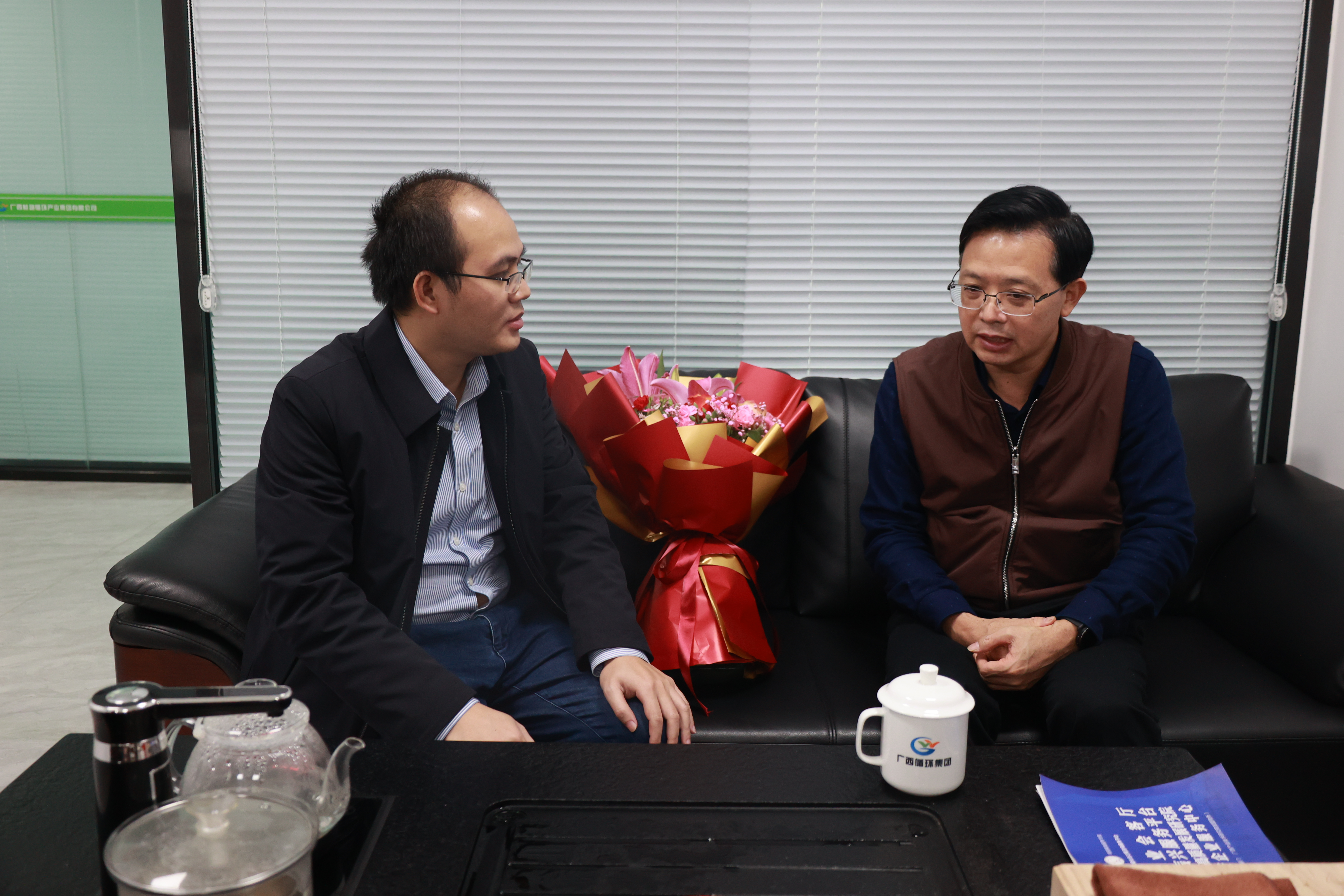 集团公司党委书记、董事长覃黎魁同志联系党外代表人士傅文刚同志,了解其工作情况,听取对集团公司生产经营等方面工作的意见和建议